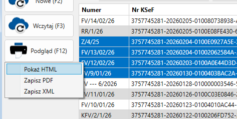 Możesz zaznaczyć kilka faktur jednocześnie (np. Ctrl/Shift), a następnie: