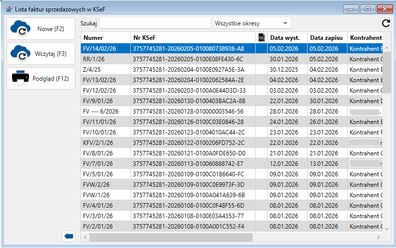 KSeF → Lista faktur sprzedażowych w KSeF