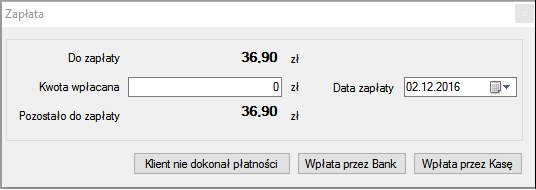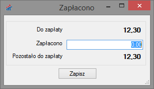 Jeżeli Kwota wpłacona będzie większa od kwoty Do zapłaty zostanie zapisana wpłata tylko do wysokości kwoty do zapłaty. Program pokaże informacje ile jest reszty do wydania.